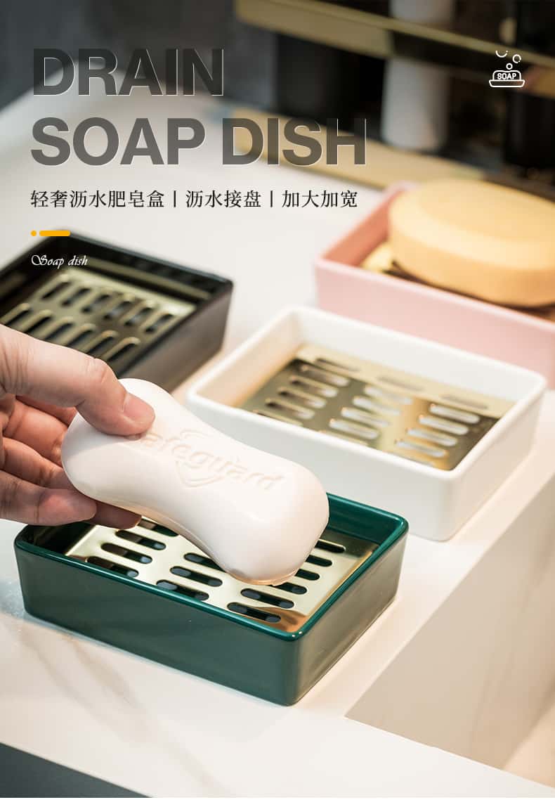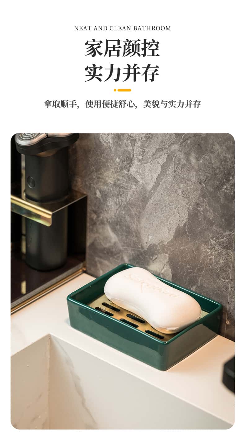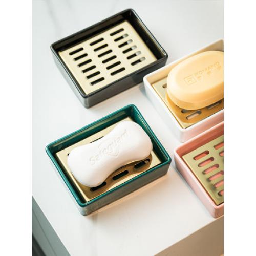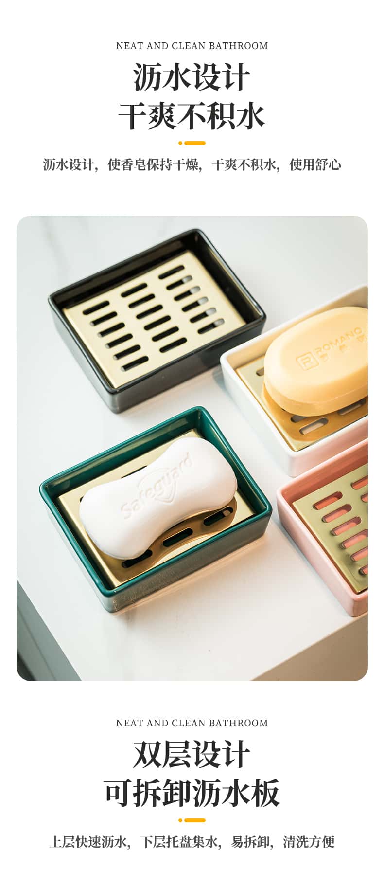 新款轻奢沥水肥皂盒家用创意时尚ins高档陶瓷双层大号香皂收纳架