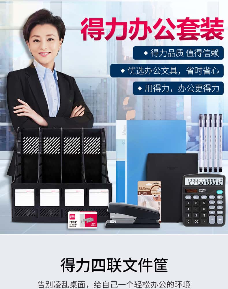 得力办公用品套装职场必备办公室员工财务常用桌面办公文具组合一套