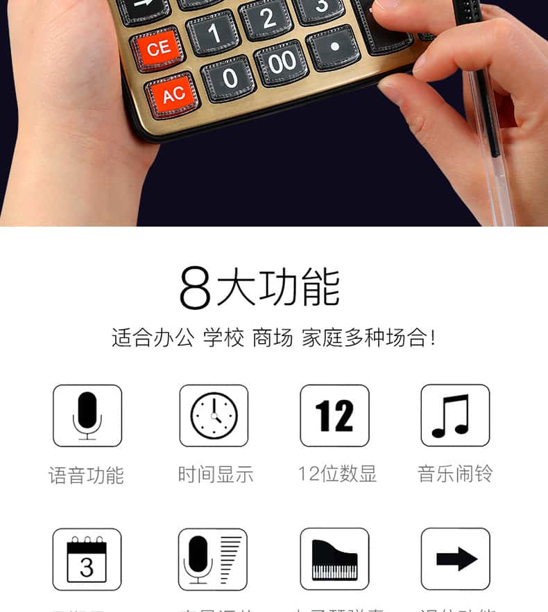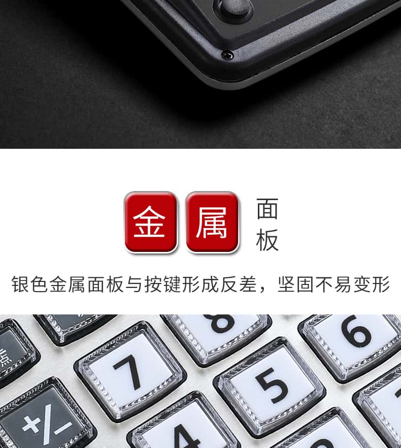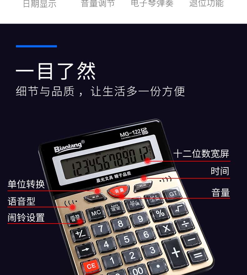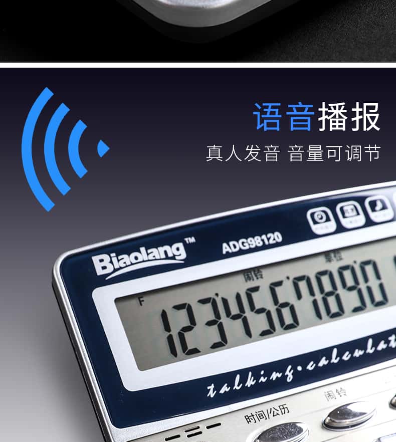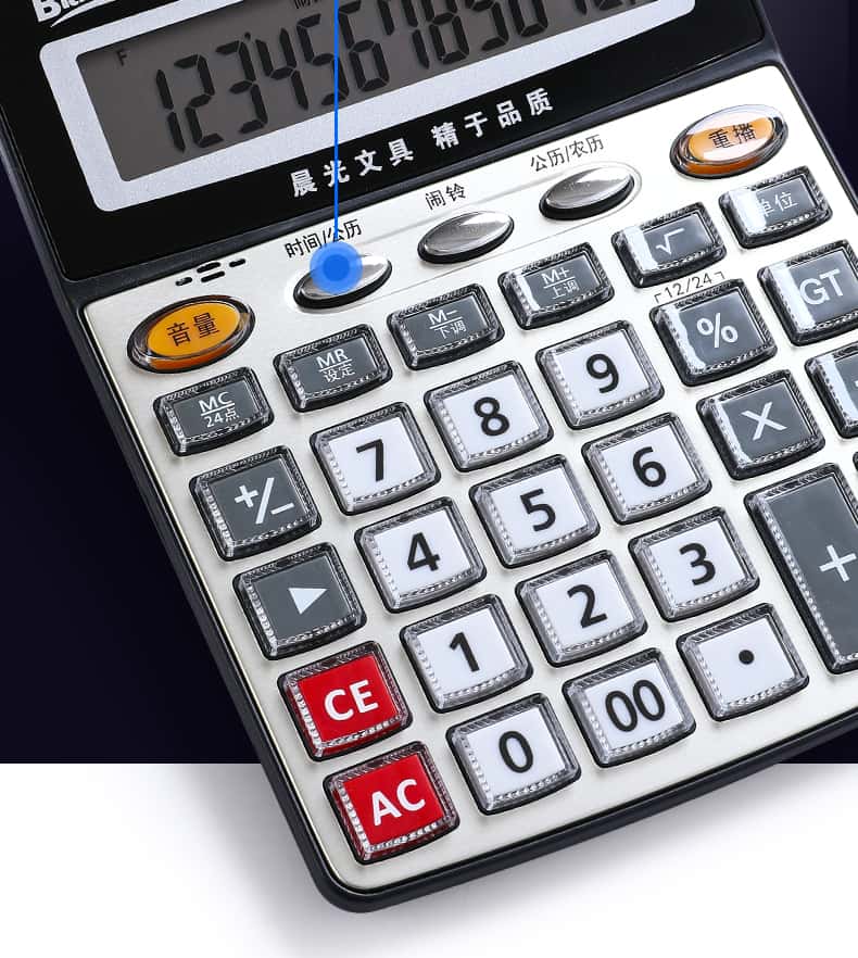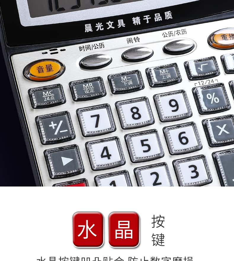 - 颜色分类: 【性价比之王】经典双电源/无语音(送电池+笔) 【两台更优惠】经典双电源/无语音(送电池+笔) 【升级语音款】98838语音款/塑料按键(送电池+笔) 【晨光冲锋号】98818语音款/塑料按键(送电池+笔) 【经济适用型】98104语音款/水晶按键(送电池+笔) 【掌柜推荐款】98740语音款/水晶按键(送电池+笔) 【招财土豪金】MG-122语音款/水晶按键(送电池+笔) 【大大大大号】98120语音款/水晶按键(送电池+笔) 【电脑按键款】98133双电源/无语音(送电池+笔) 【财务专用款】98718语音款/电脑按键(送电池+笔)