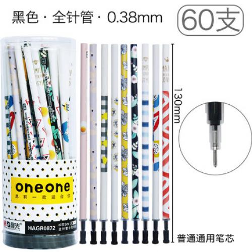 60支晨光中性笔笔芯0.5mm黑色0.38水笔芯 孔庙祈福学生用品全针管子弹头批发0.35替芯换小清新签字笔文具优品