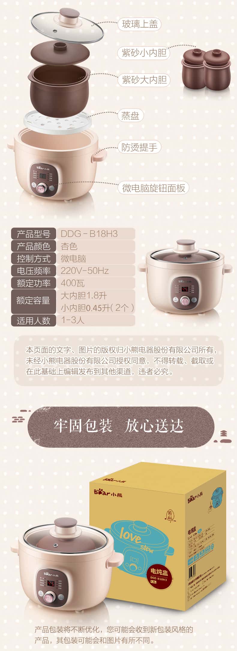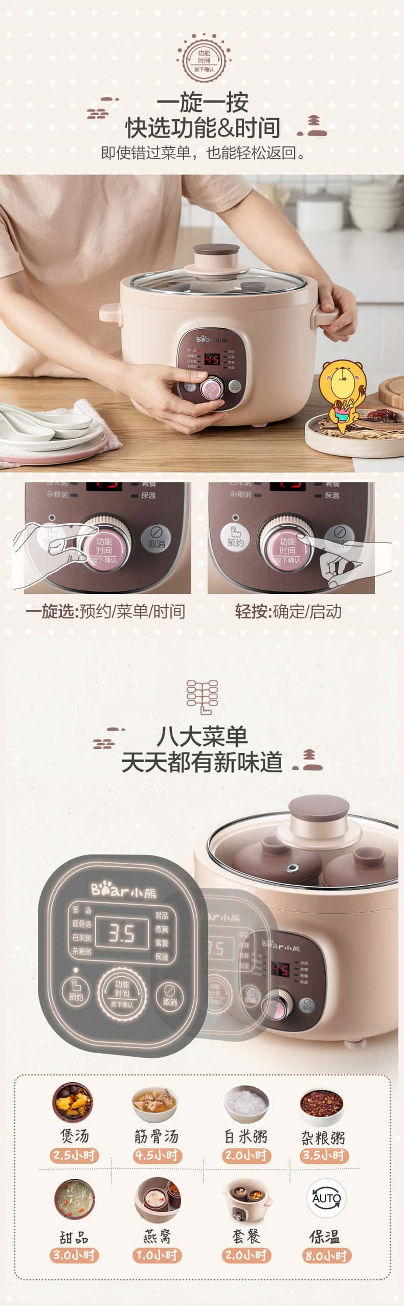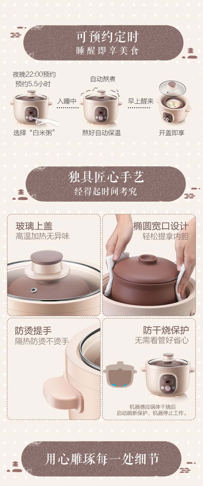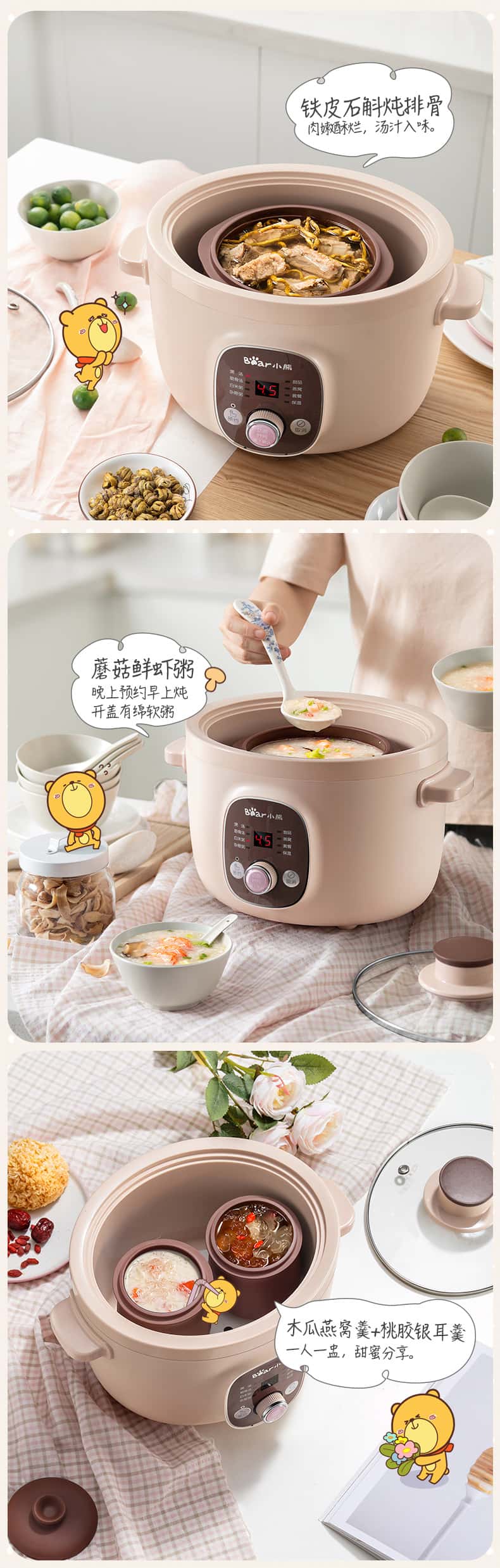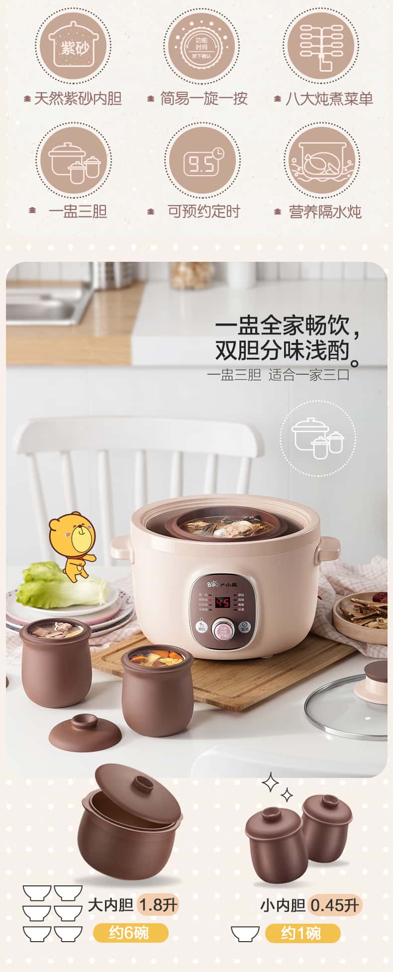 小熊电炖锅炖盅煮粥煲汤紫砂锅陶瓷全自动煮粥全自动家用煲粥锅