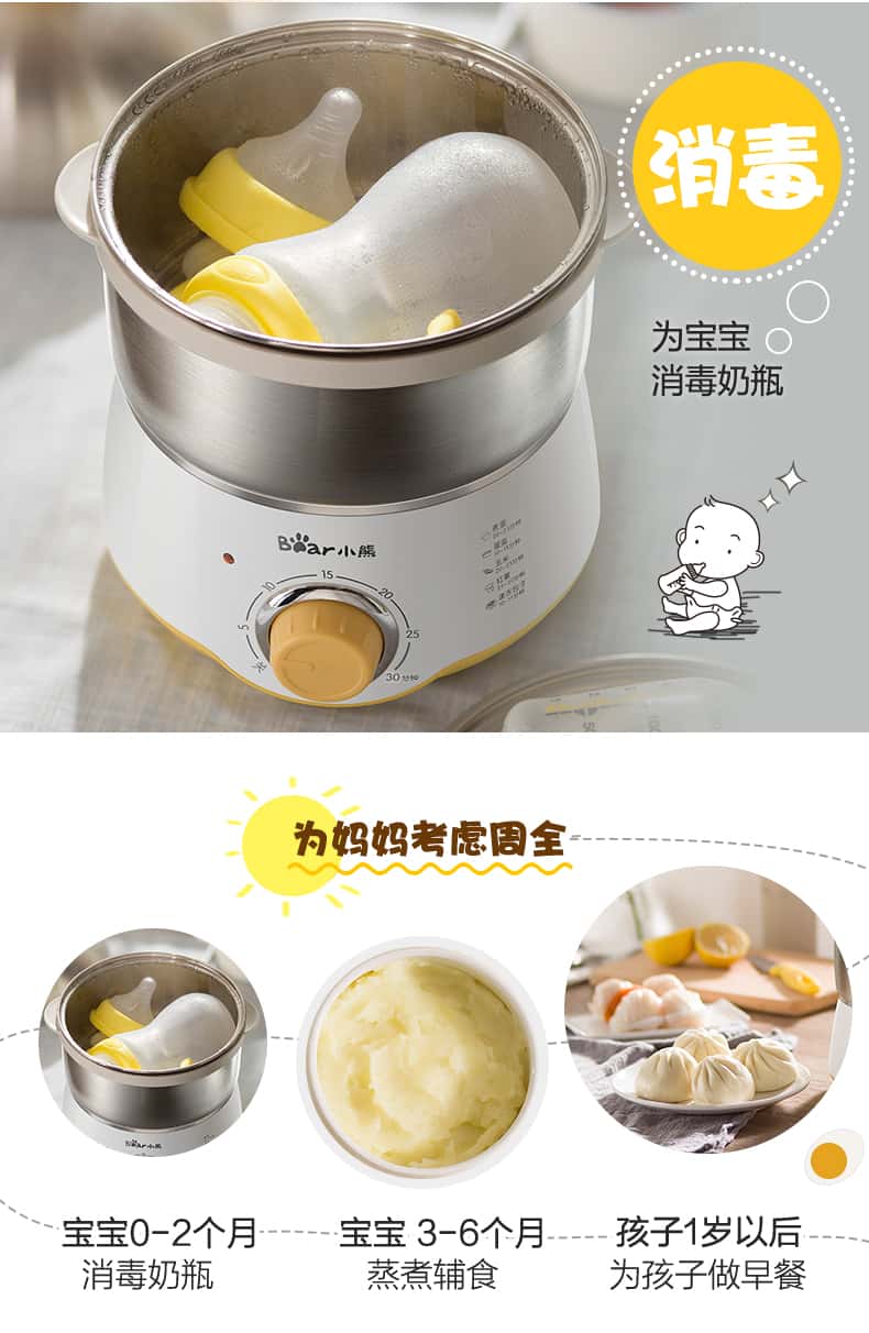小熊蒸蛋器家用双层定时早餐神器多功能早餐机小型煮蛋器小熊电器