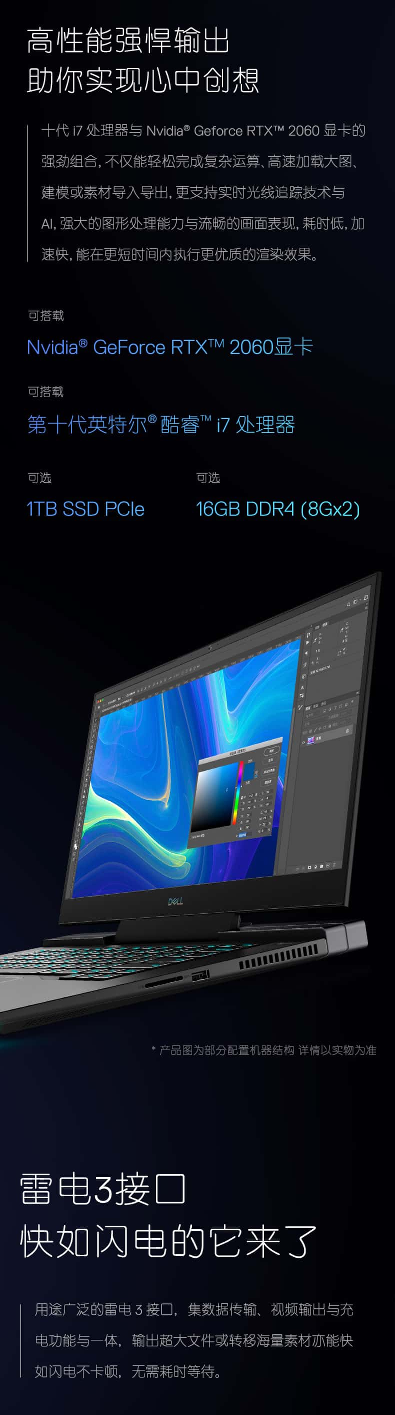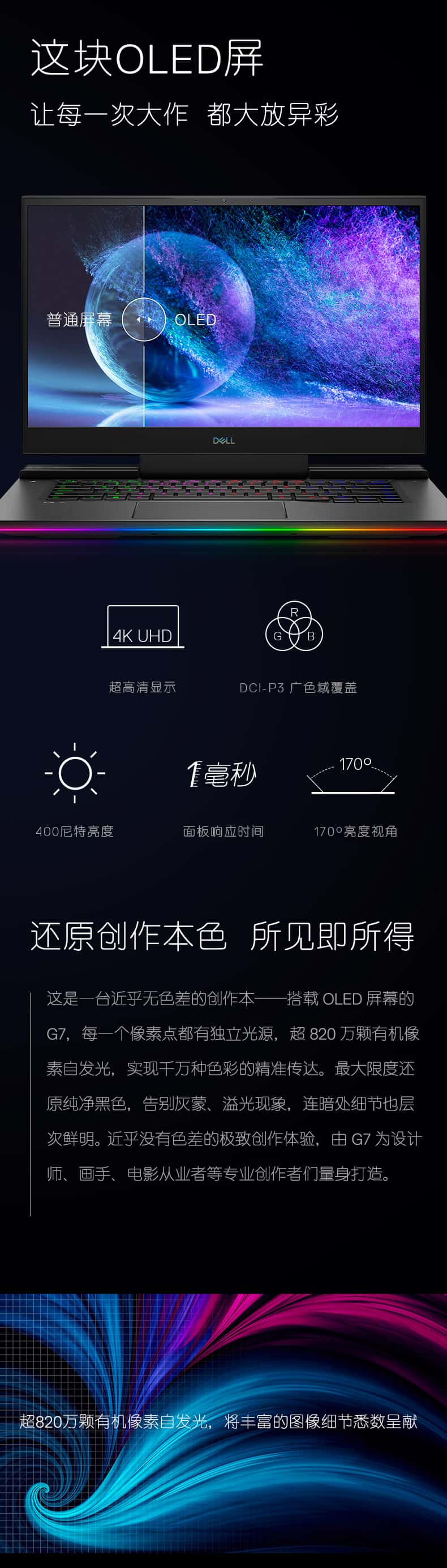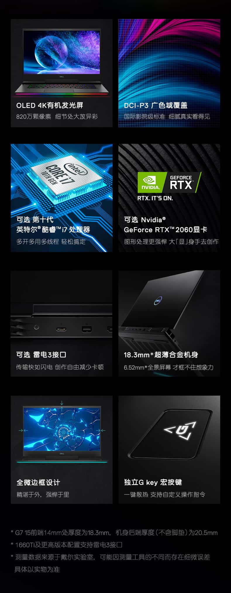 【2020新品】Dell/戴尔 G7 7500 15.6英寸1660Ti十代i7游戏本4K OLED笔记本手提设计300Hz电竞屏学生官网