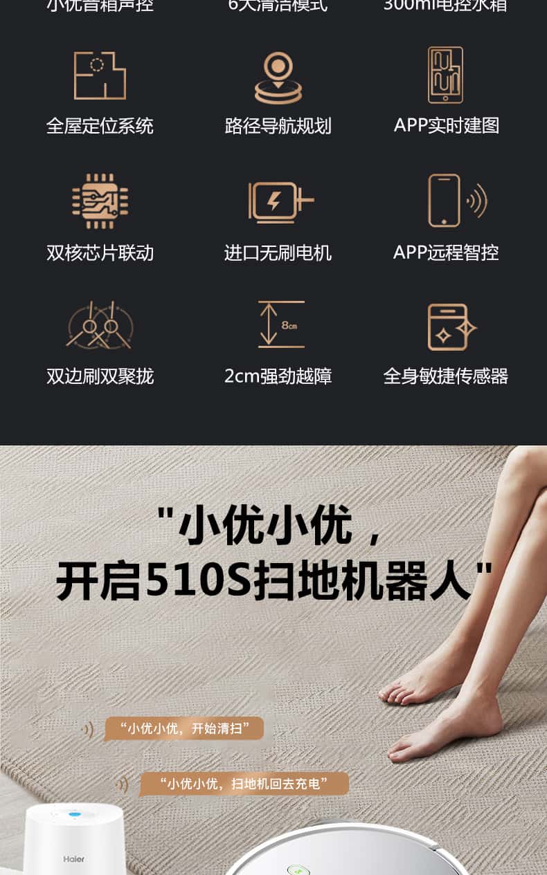 haier海尔扫地机器人家用全自动智能扫拖地一体机吸尘器洗擦地机