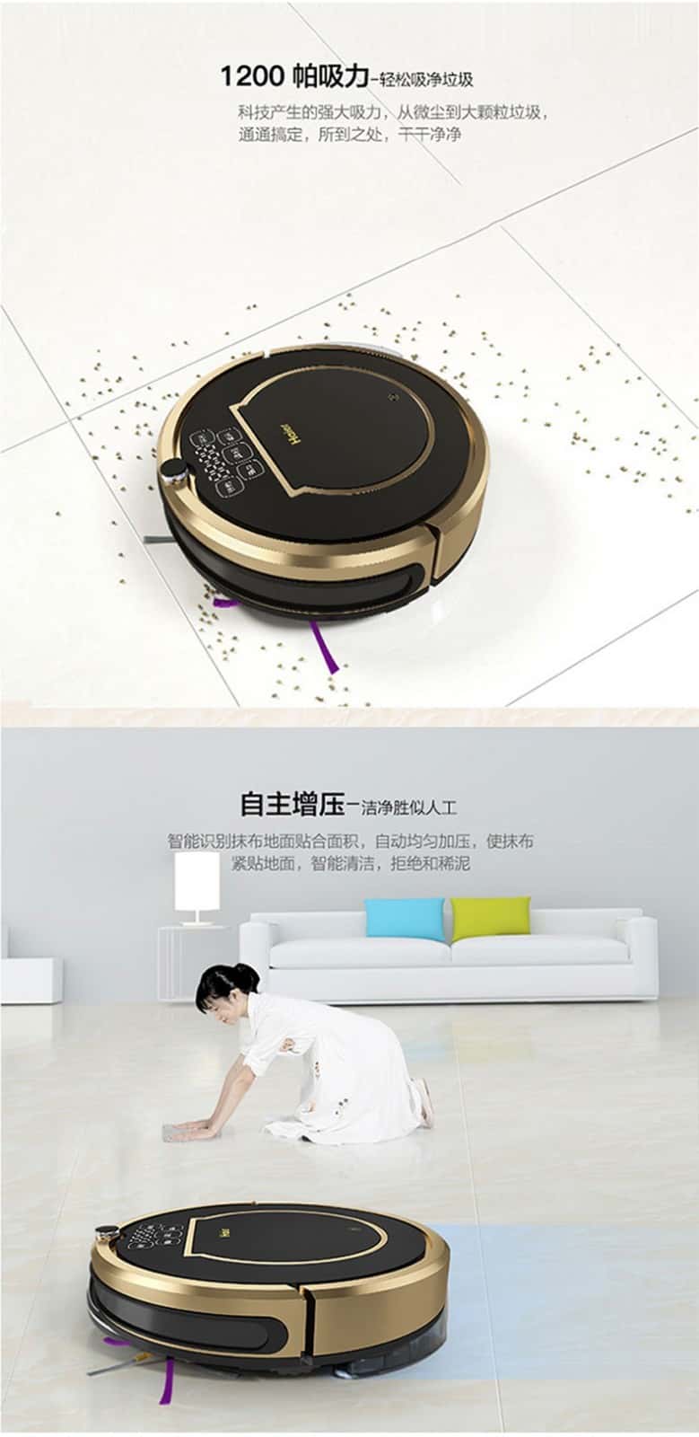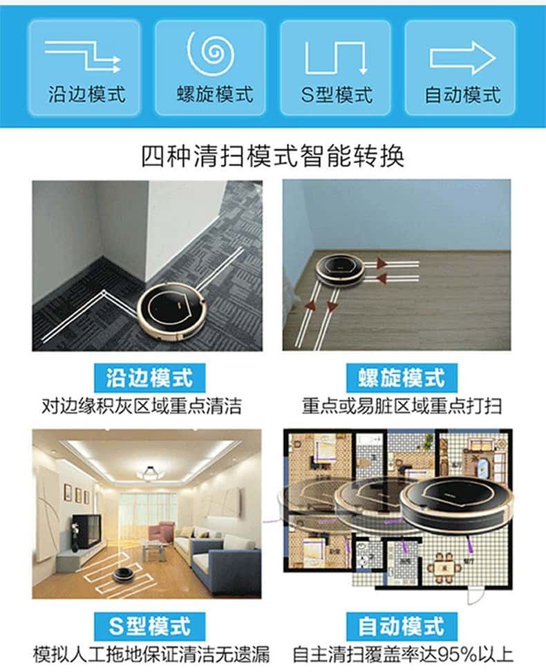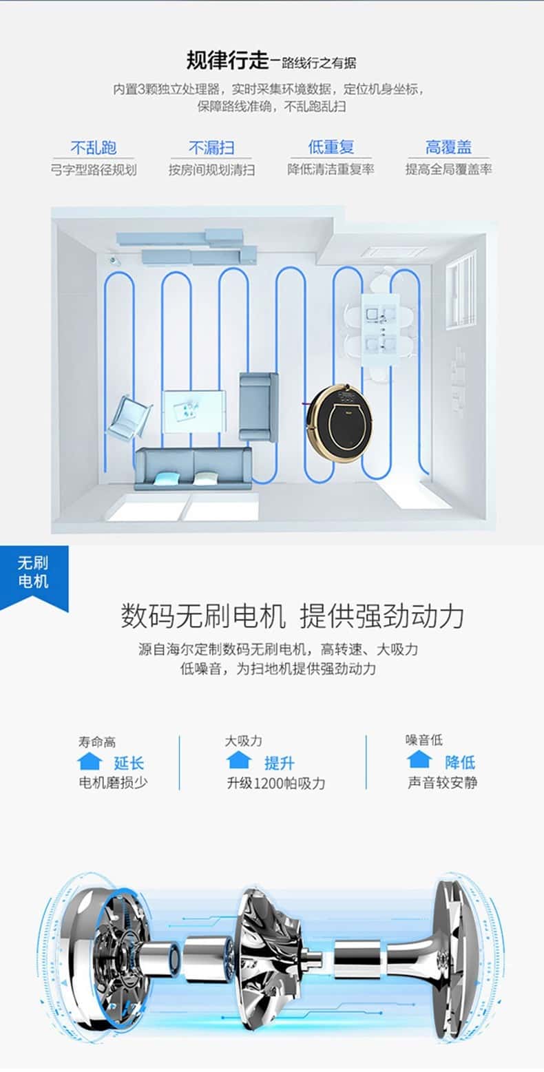 - 附加功能: APP控制 定时预约 定点清扫 延边清扫 手机遥控 灰尘识别 自动清扫