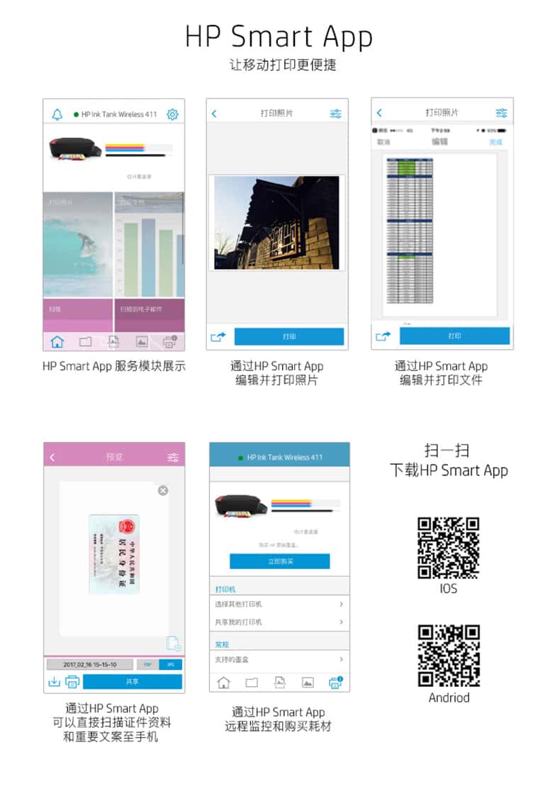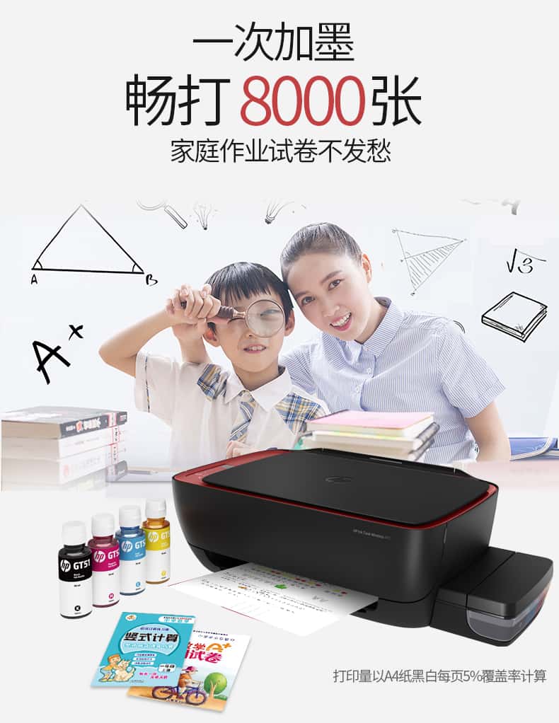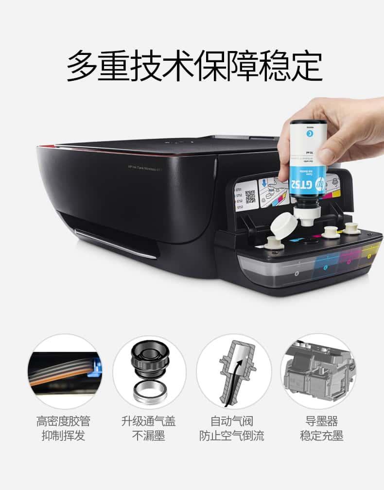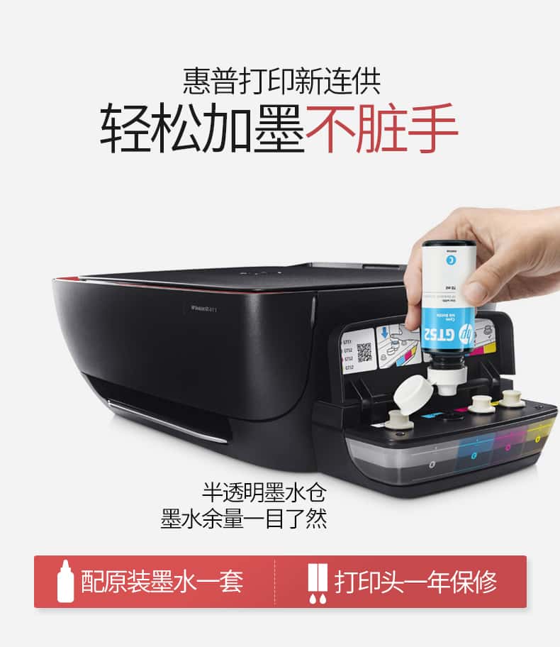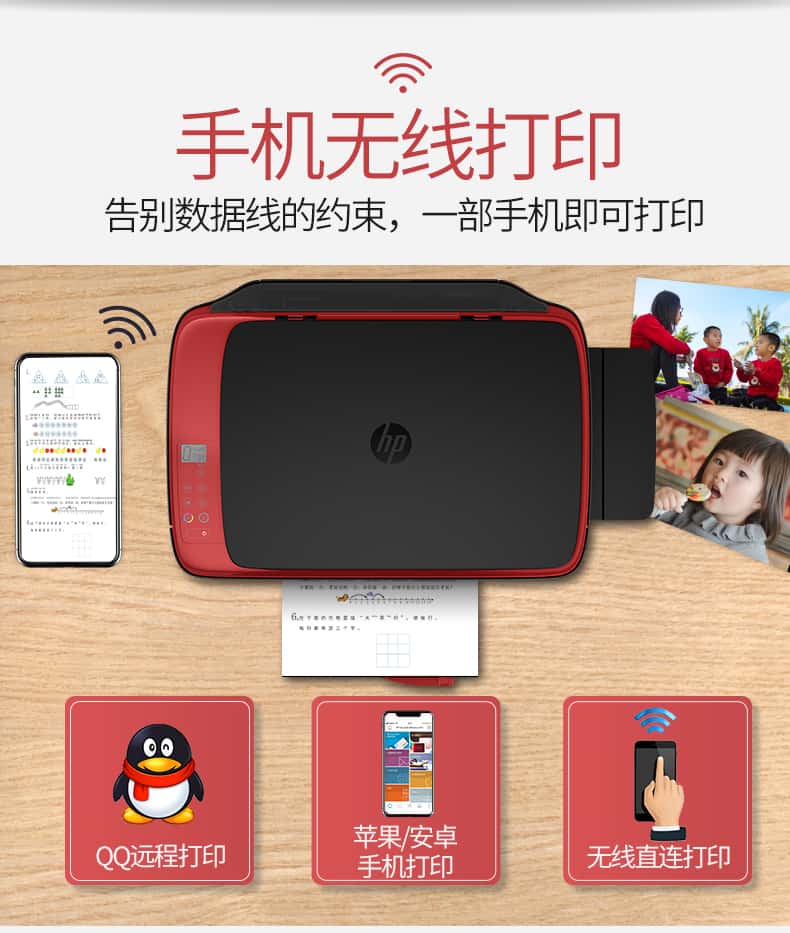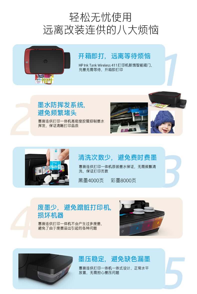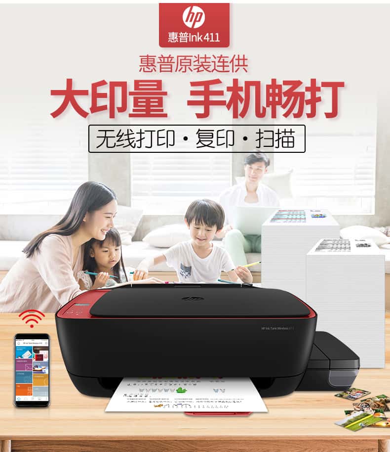惠普tank411彩色喷墨无线wifi连供打印机复印件扫描一体机a4小型学生家用手机照片相片办公三合一tank311