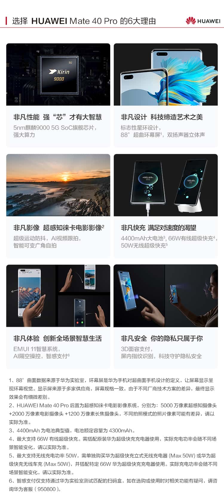 华为/HUAWEI Mate 40 Pro 5nm麒麟9000旗舰SoC芯片超感知徕卡电影影像