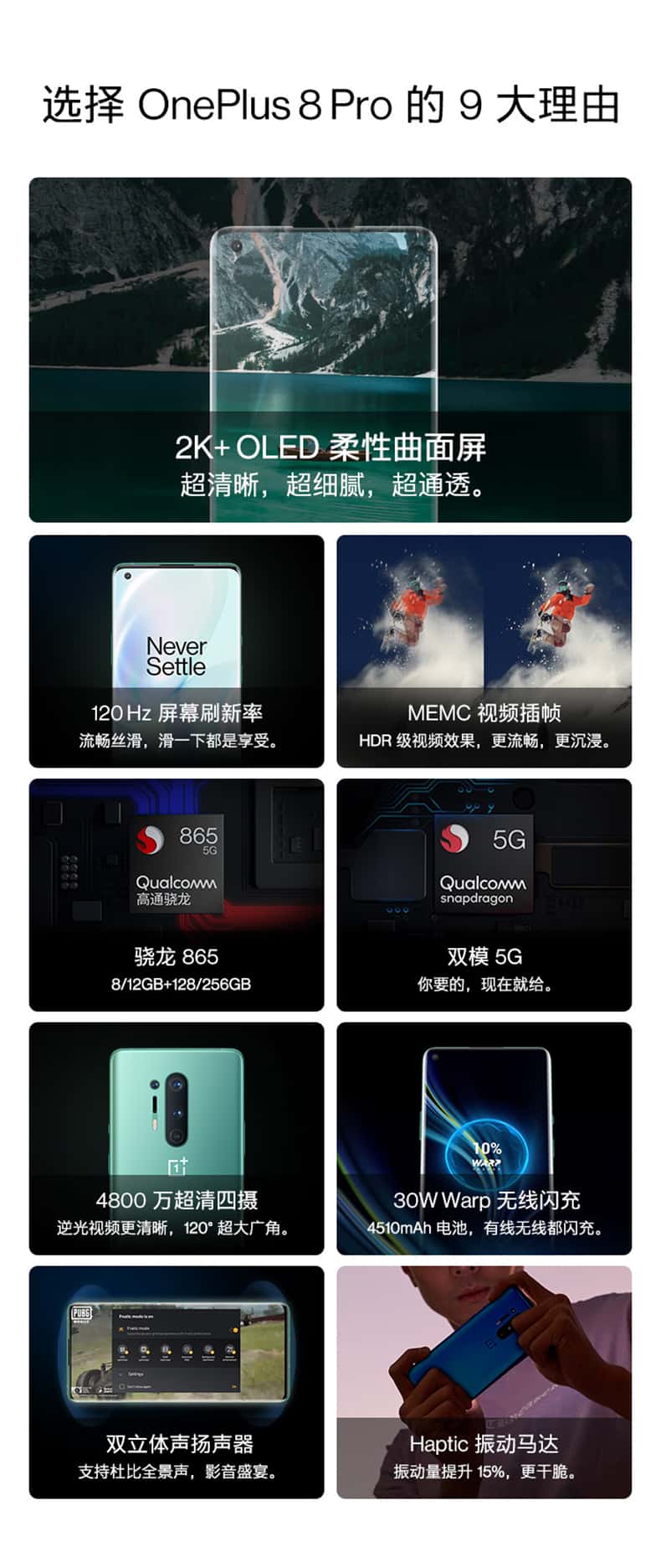 一加OnePlus 8 Pro 5G旗舰手机2K+120Hz 柔性屏骁龙865