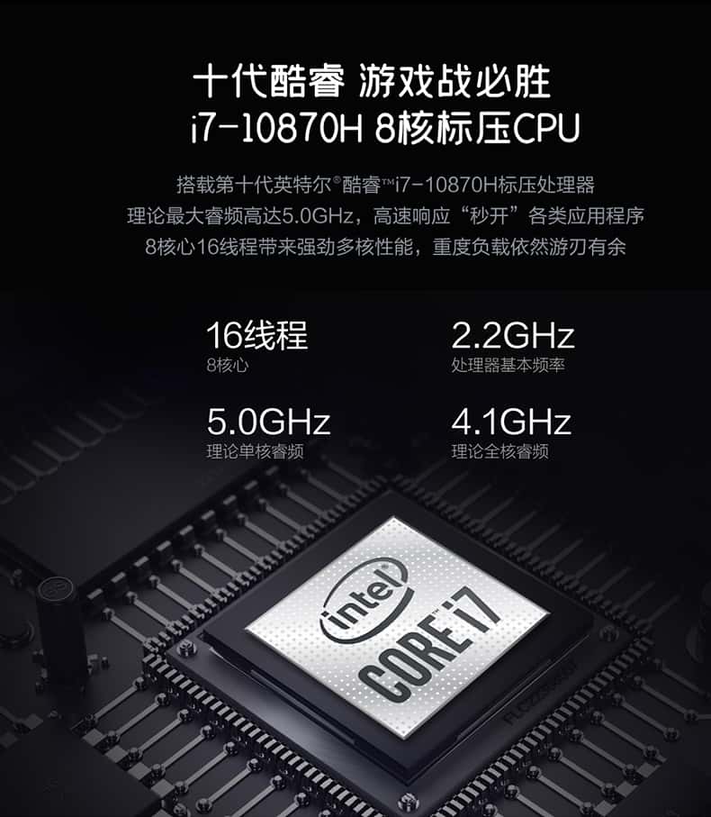 第十代智能英特尔® 酷睿™ i7-10870H标压处理器,八核十六线程,