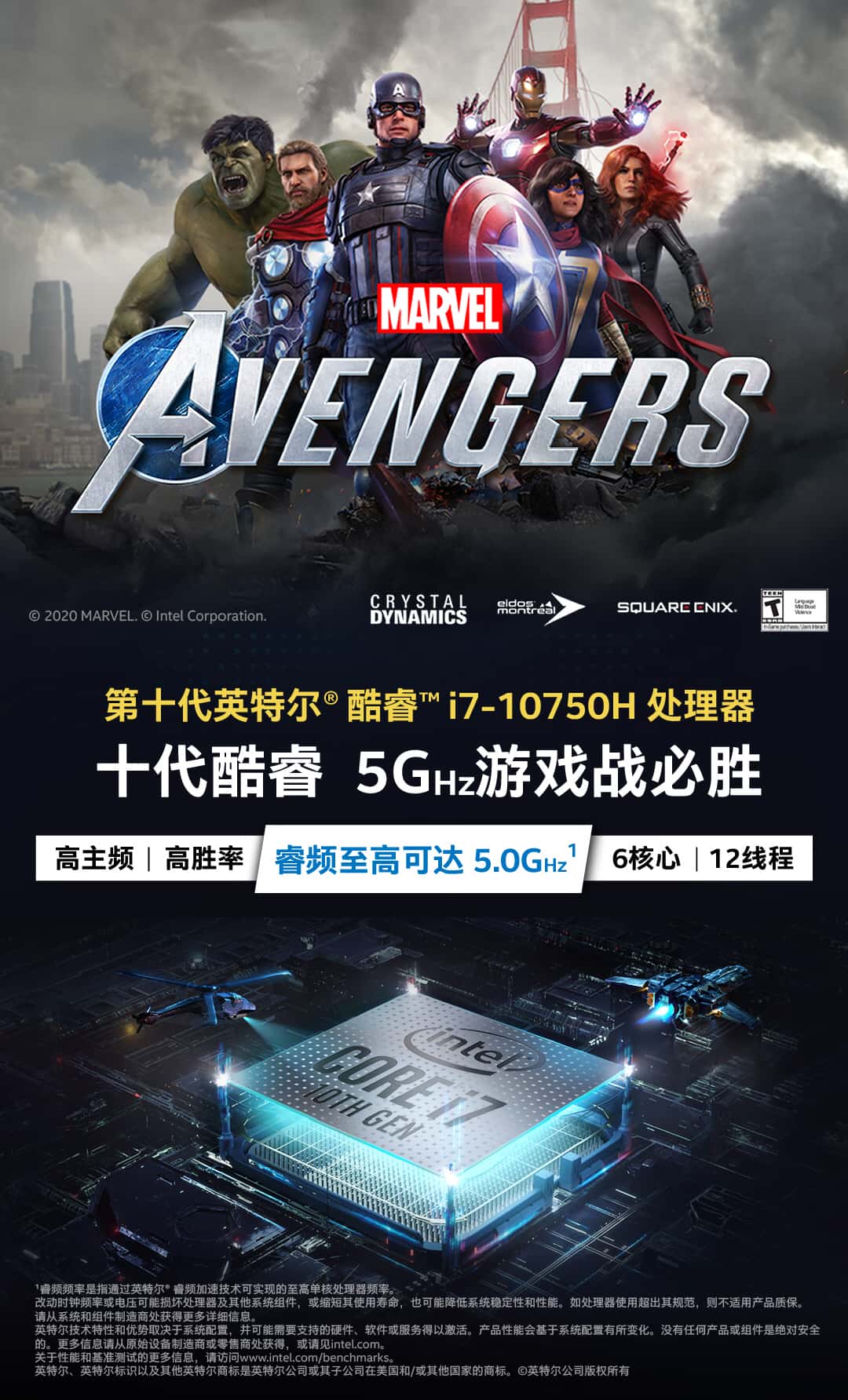 第十代英特尔® 酷睿 ™ i7-10750H 标压处理器,六核十二线程,