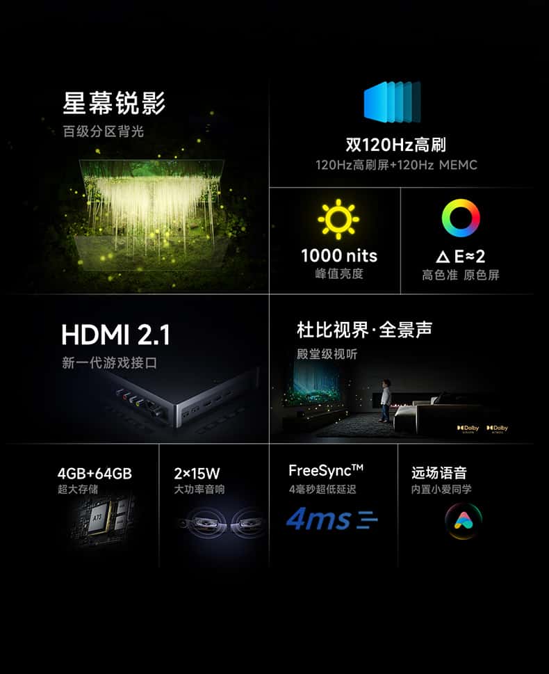 电视类型:全面屏刷屏率:120Hz接收制式:PAL NTSC SECAM DTMB